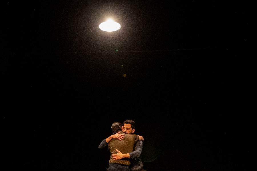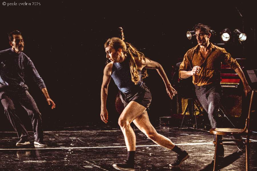 Salimos a correr el tango, a saltar para caer del otro lado y verlo con distancia desde afuera. Lo escuchamos sentados, lo observamos de pie, unos cuantos años después de una época dorada que ya no existe. Sólo queda una nostalgia de la otrora música de Buenos Aires y una danza arrasada por la industria cultural. Nos disponemos a poner en tensión lo que se ha hecho hasta ahora con esta danza, y con la figura de Astor Piazzolla y su música. Esto no es la repetición de un homenaje, no es un espectáculo “de tango”, es una pregunta que busca generar otra poética, otro universo, otro lenguaje.
